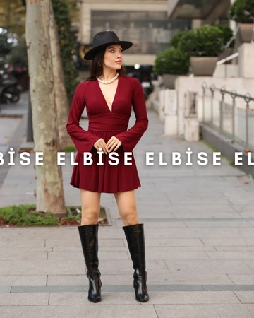 DEKOLTELİ MİNİ ELBİSE-BORDO