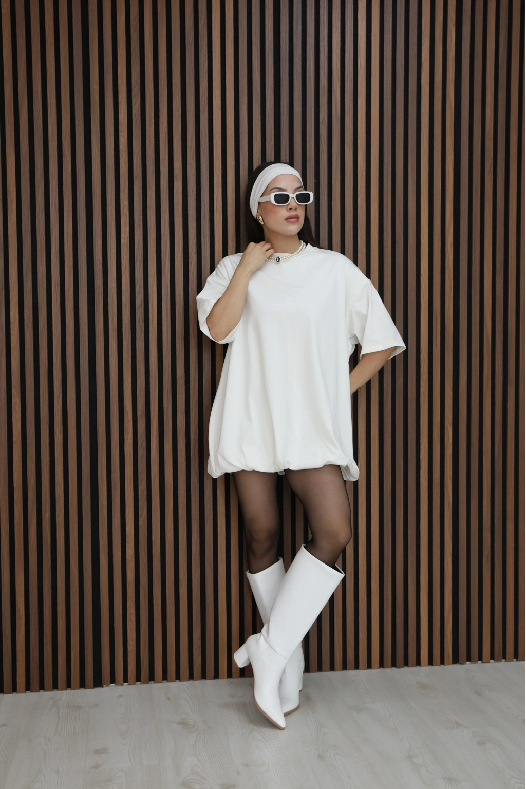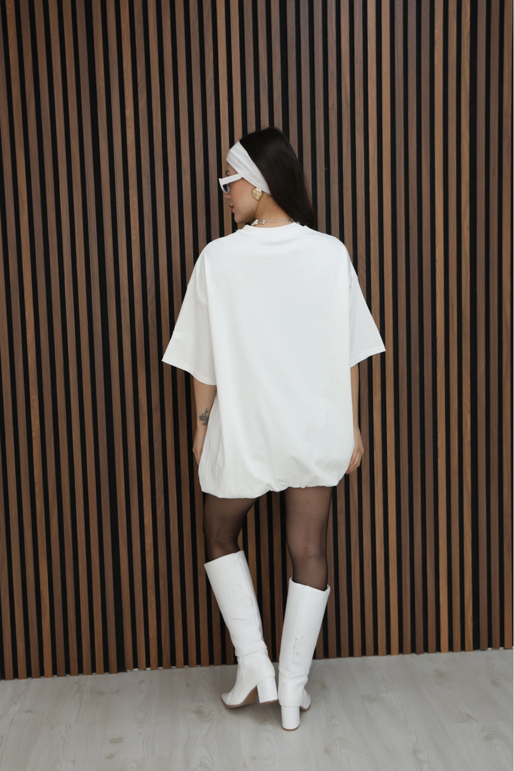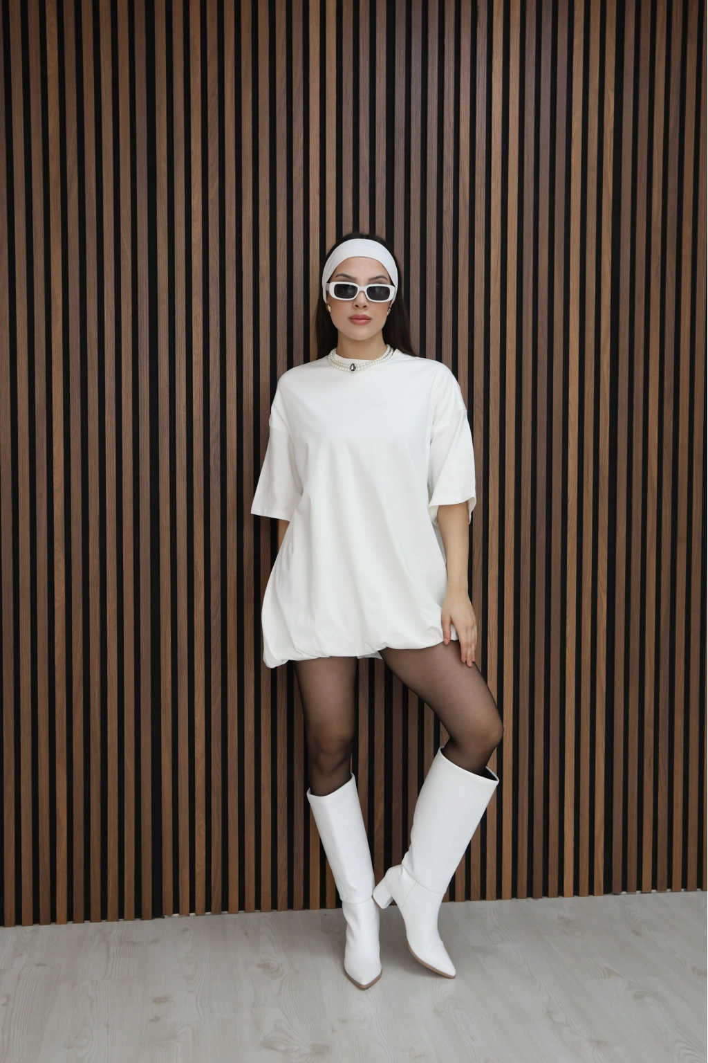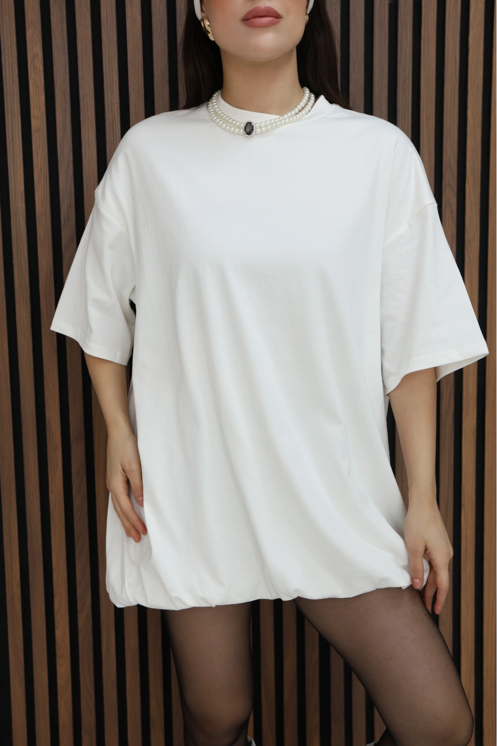 BASİC SALAS KESİM ELBİSE GÖRÜNÜMLÜ TUNİK-BEYAZ