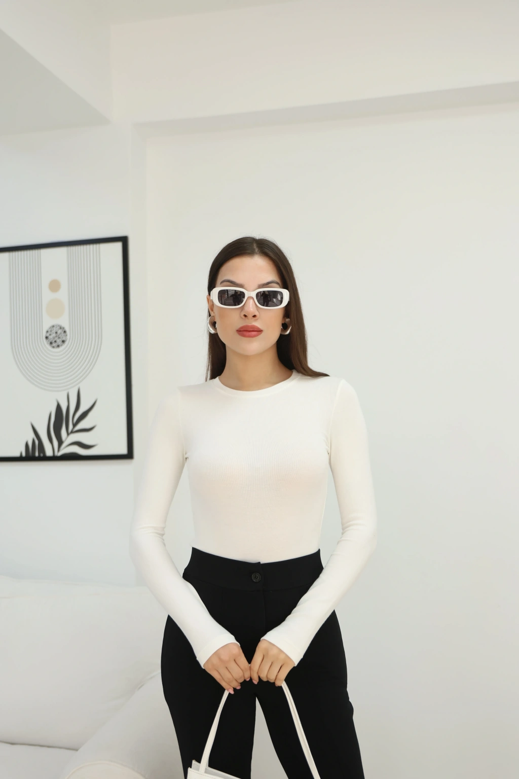 BİSİKLET YAKA BODY SUİT- BEYAZ