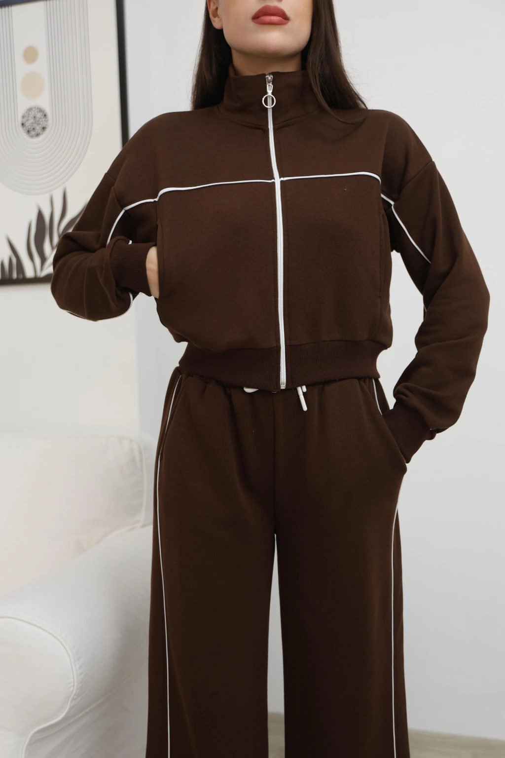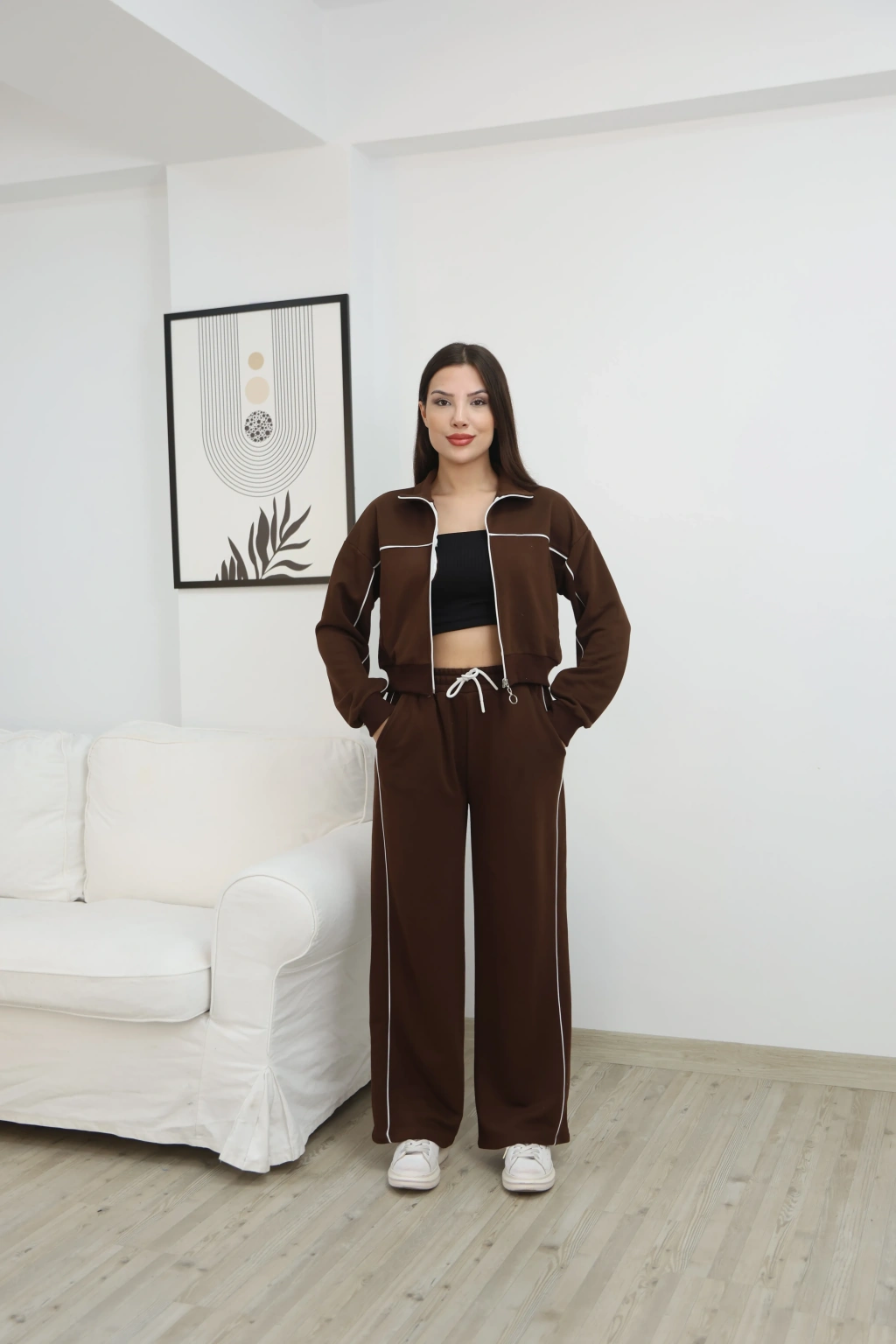 ÇİZGİ DETAY ESOFMAN TAKIM- KAHVERENGİ