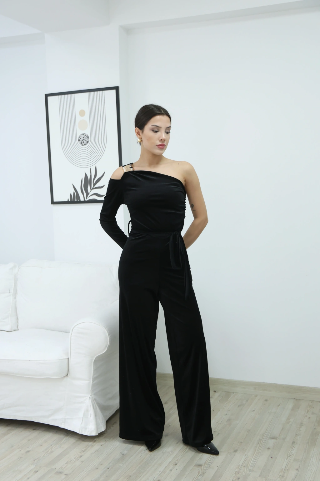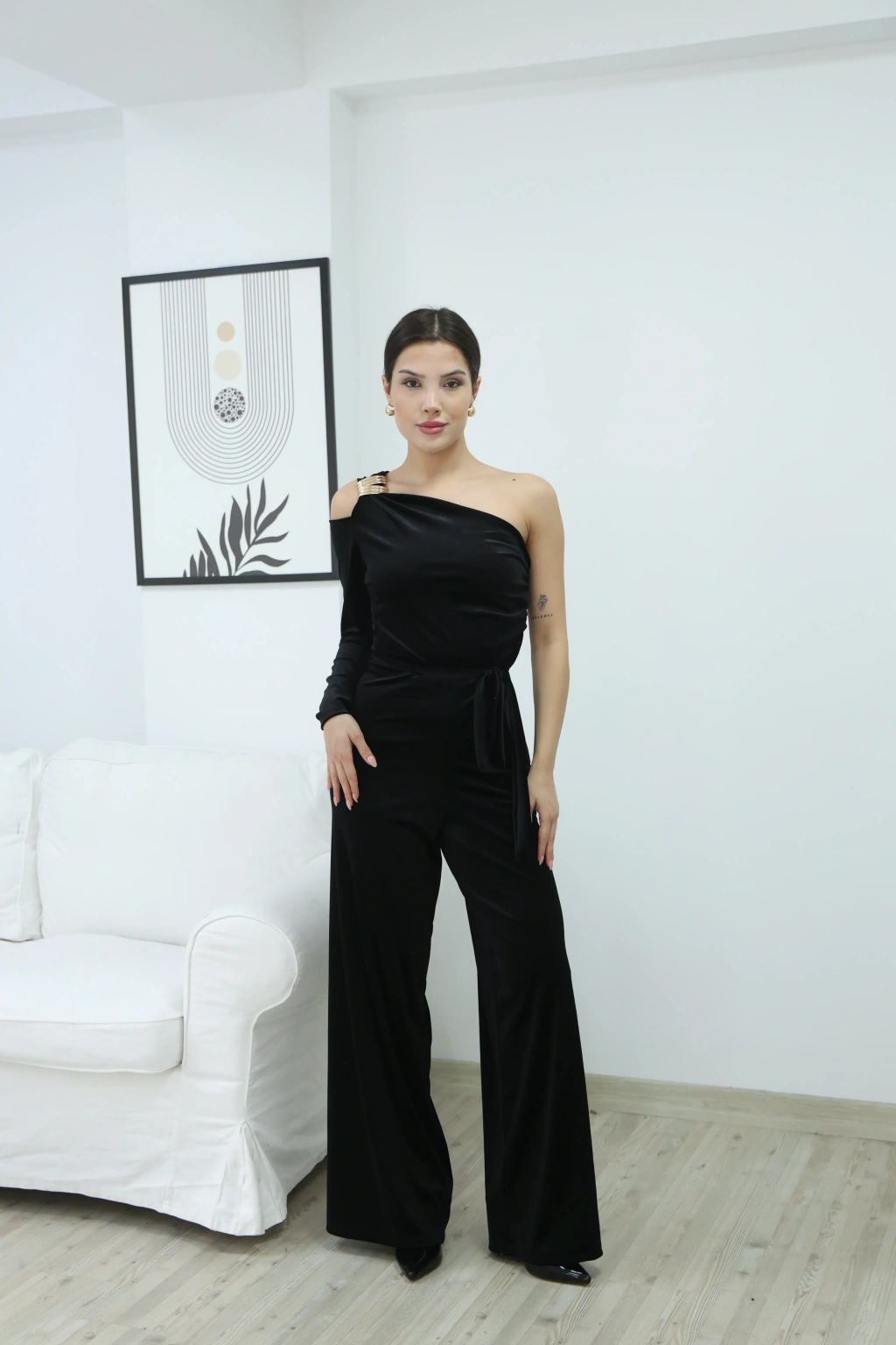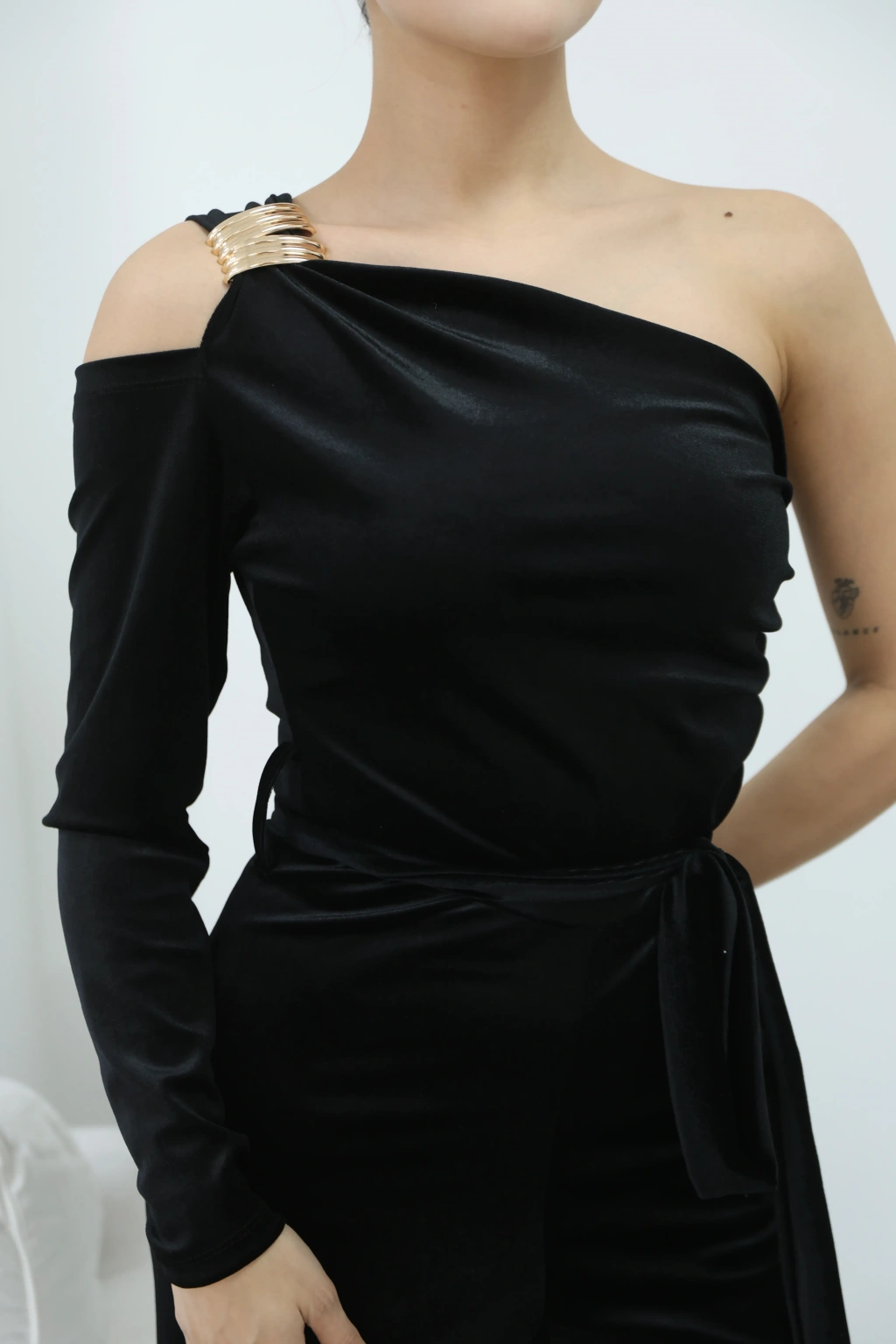 KADİFE PARLAK TEK OMUZ TULUM- SİYAH