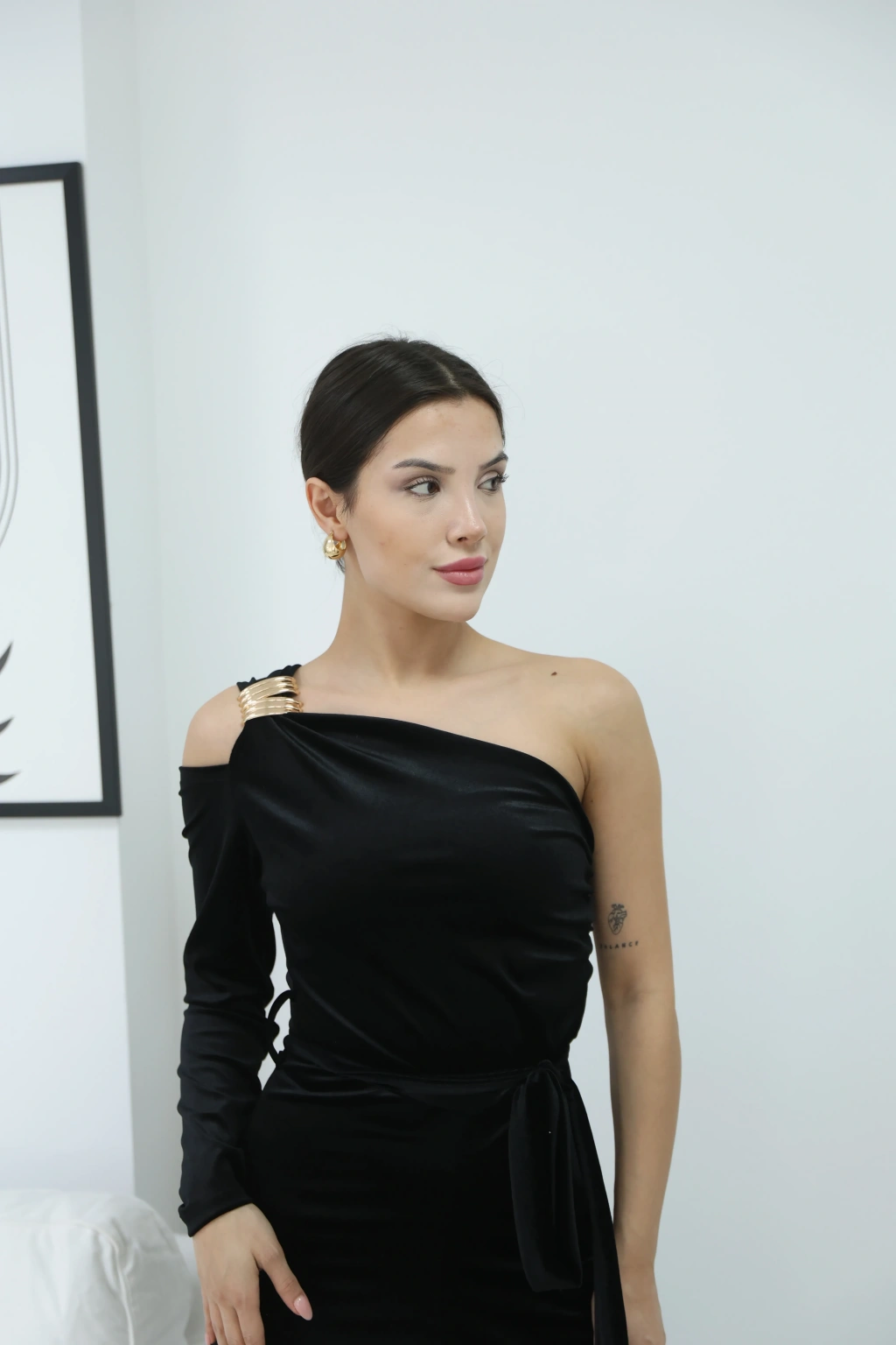 SİMLİ DRAPELİ ELBİSE-SİYAH