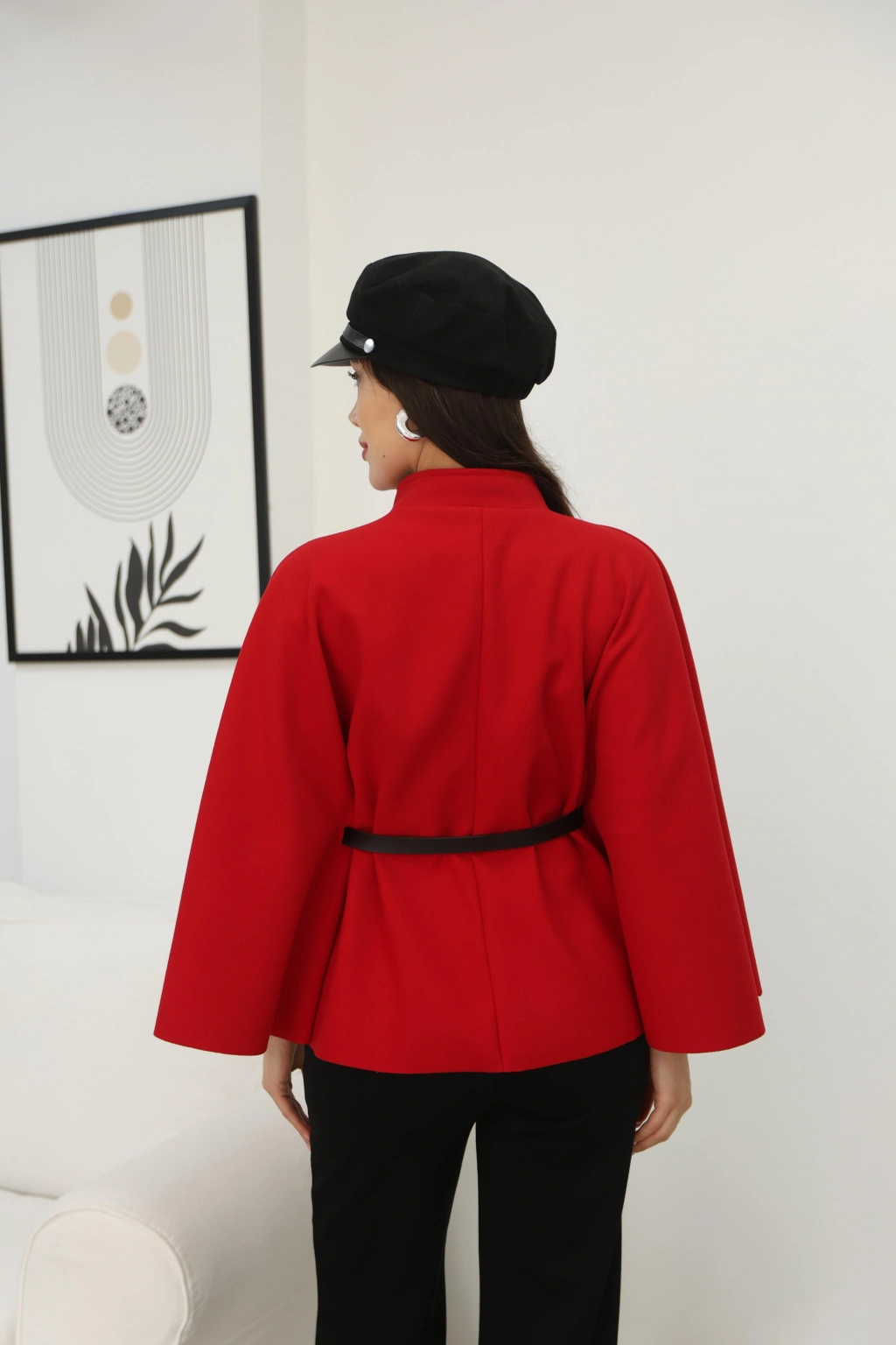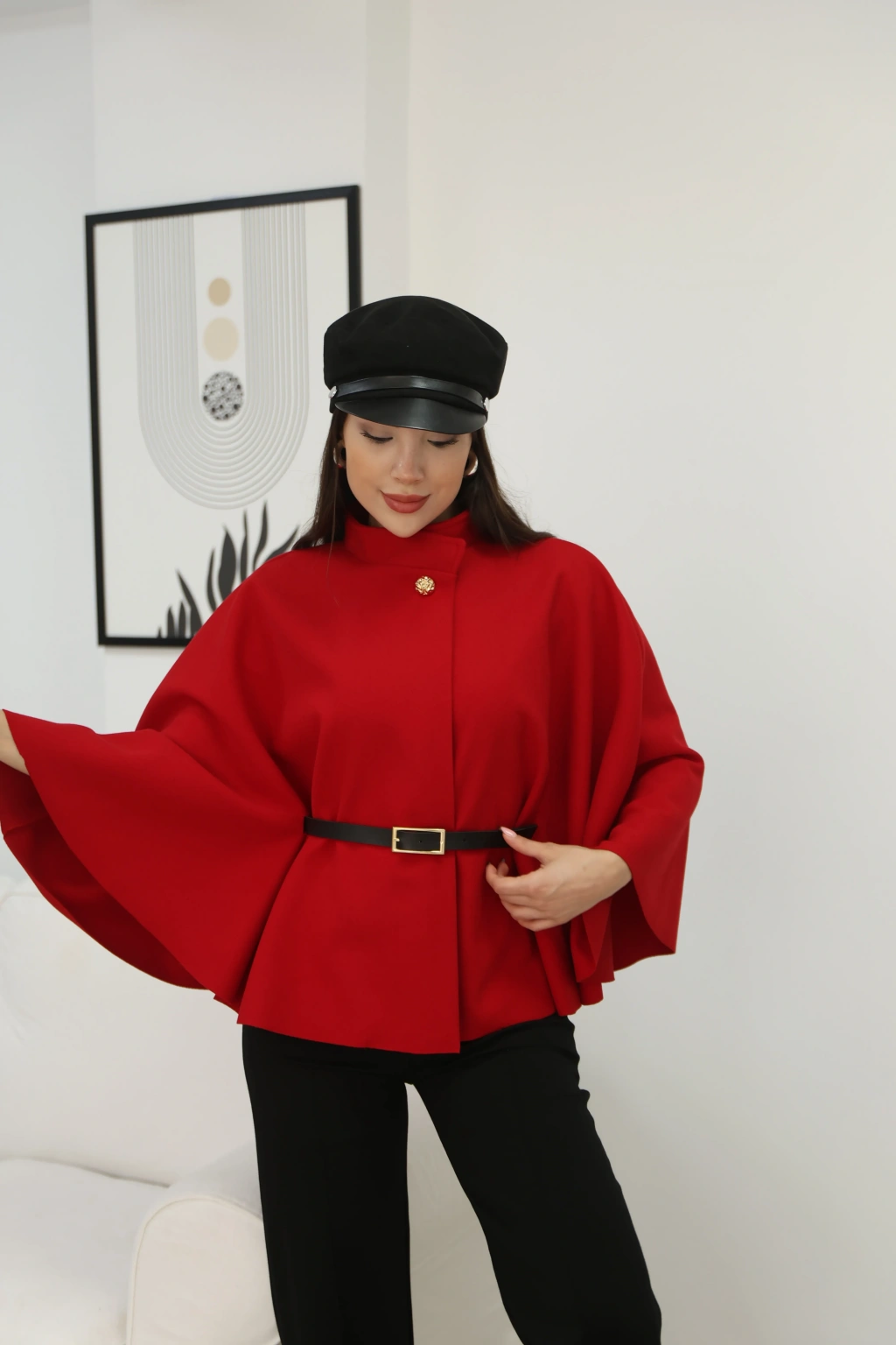 KEMERLİ KAŞE PELERİN- KIRMIZI