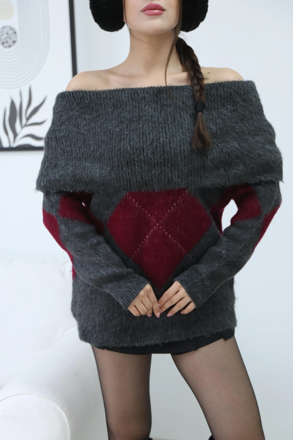 MADONNA YAKA KIRÇILLI BAKLAVA DESEN KAZAK