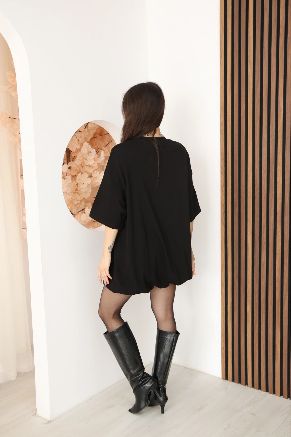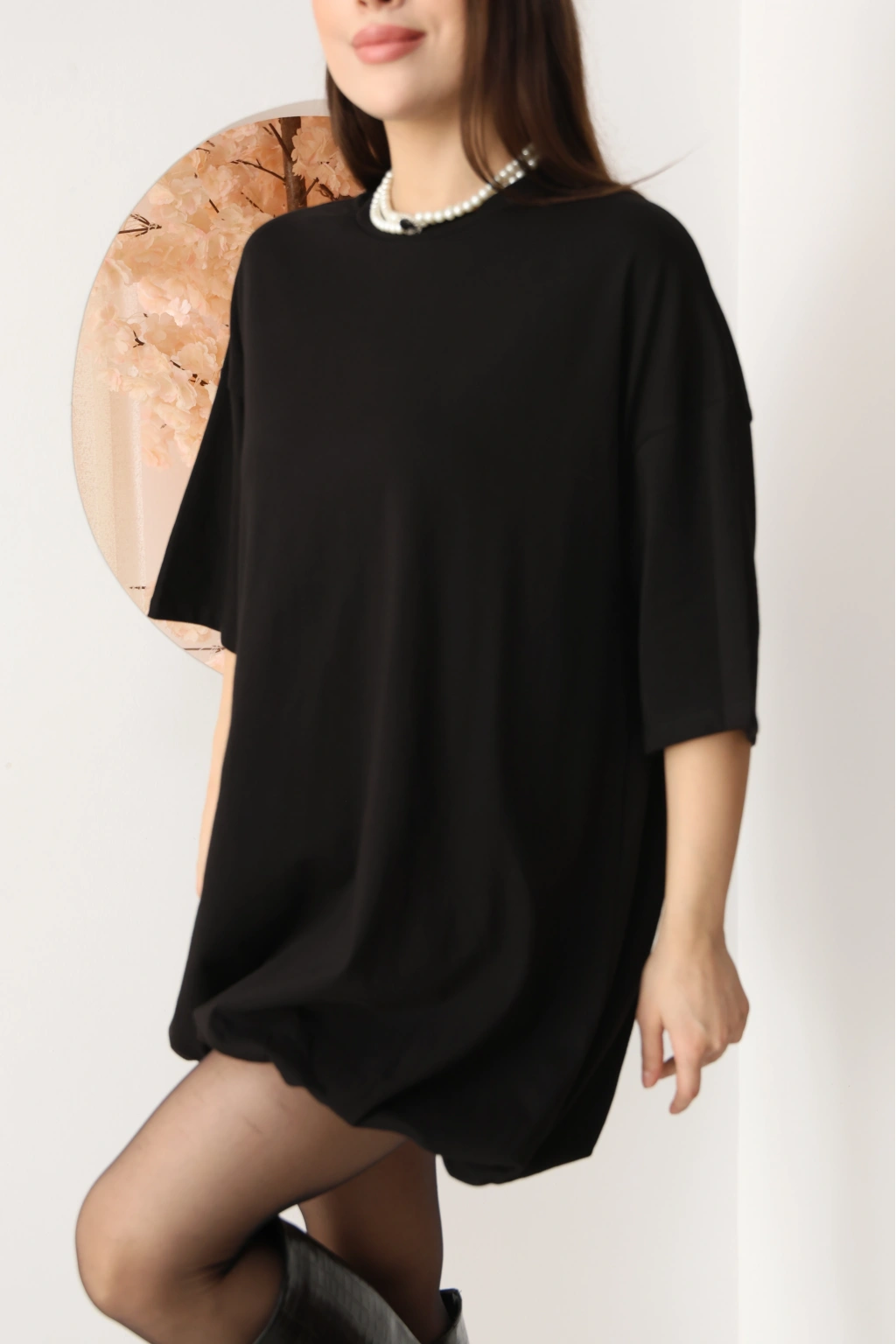 BASİC SALAS KESİM ELBİSE GÖRÜNÜMLÜ TUNİK-SİYAH