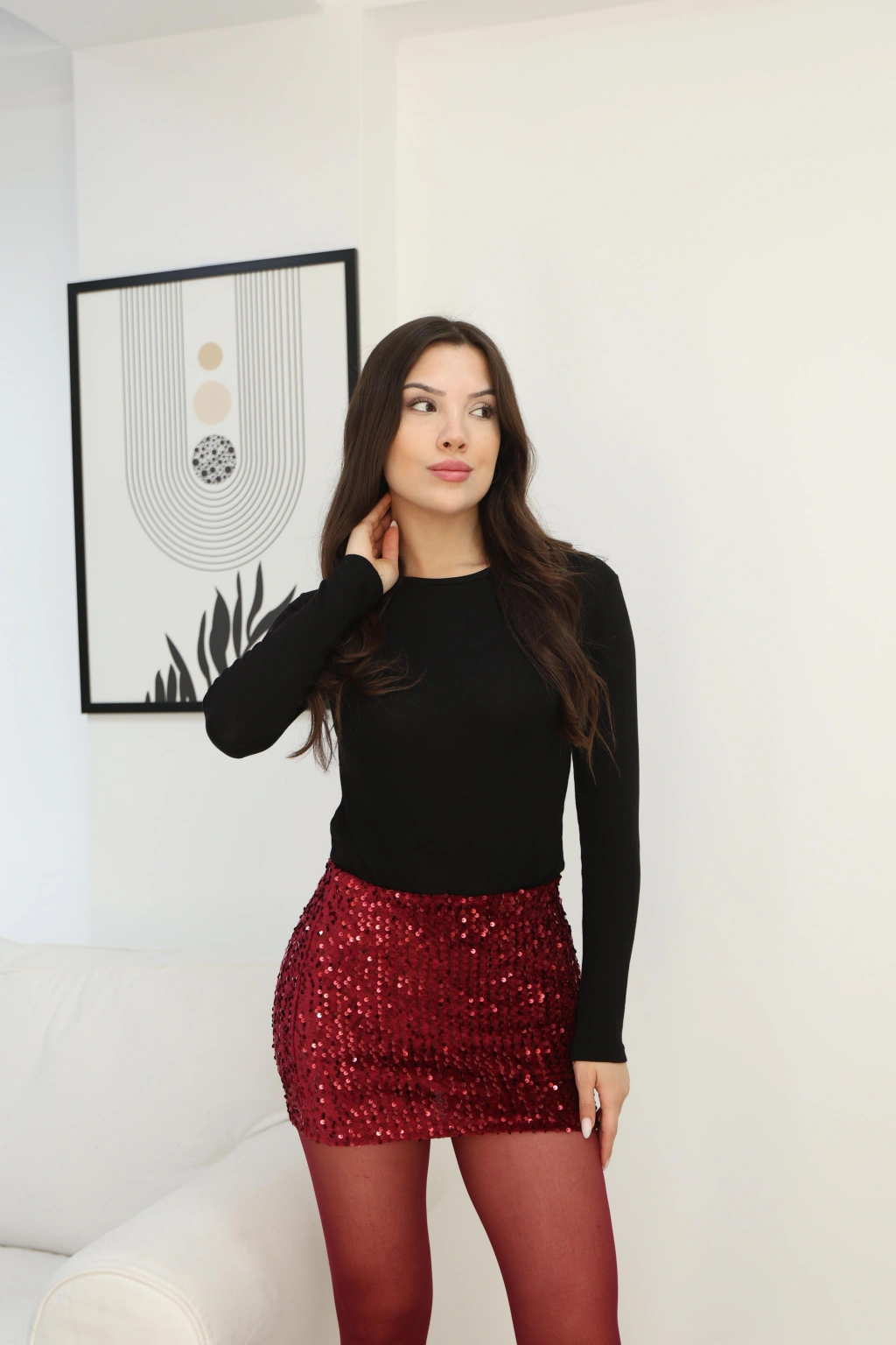 MİNİ YILBAŞI ETEK- BORDO