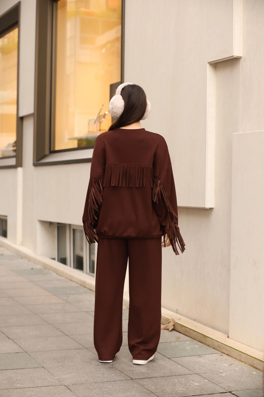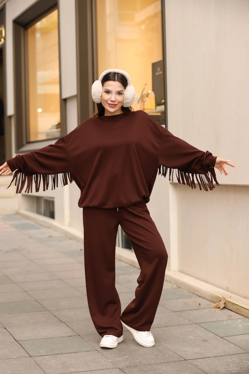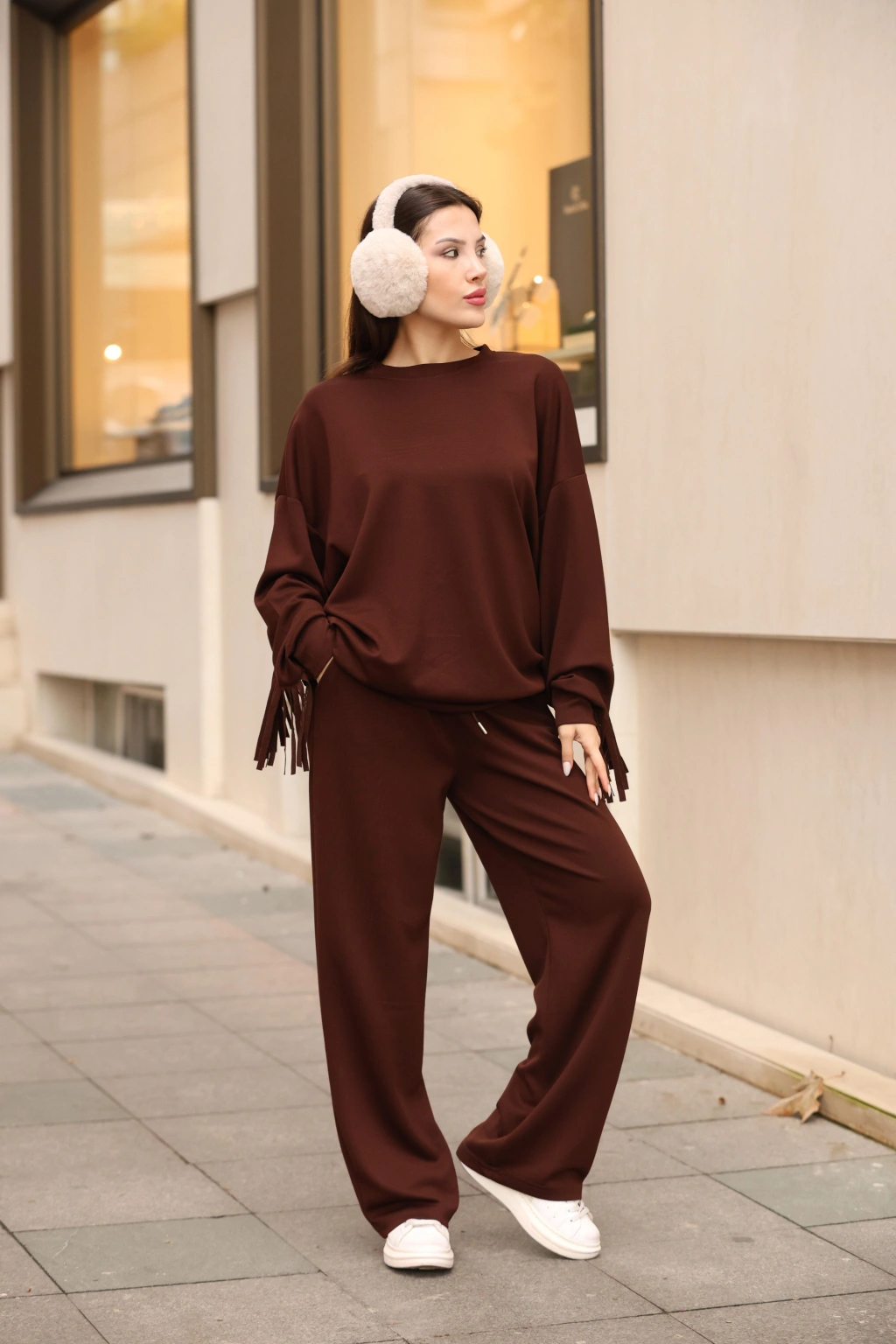 MODAL KUMAŞ SALAŞ EŞOFMAN TAKIM- KAHVERENGİ