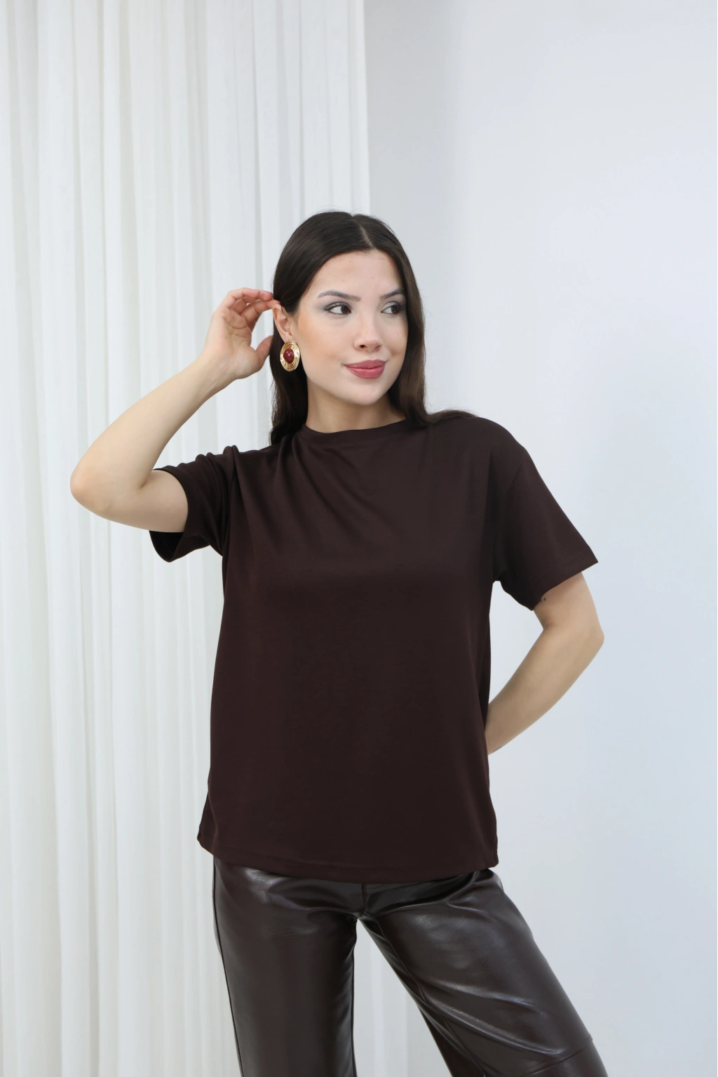 BASİC SALAS KESİM ELBİSE GÖRÜNÜMLÜ TUNİK-KAHVE