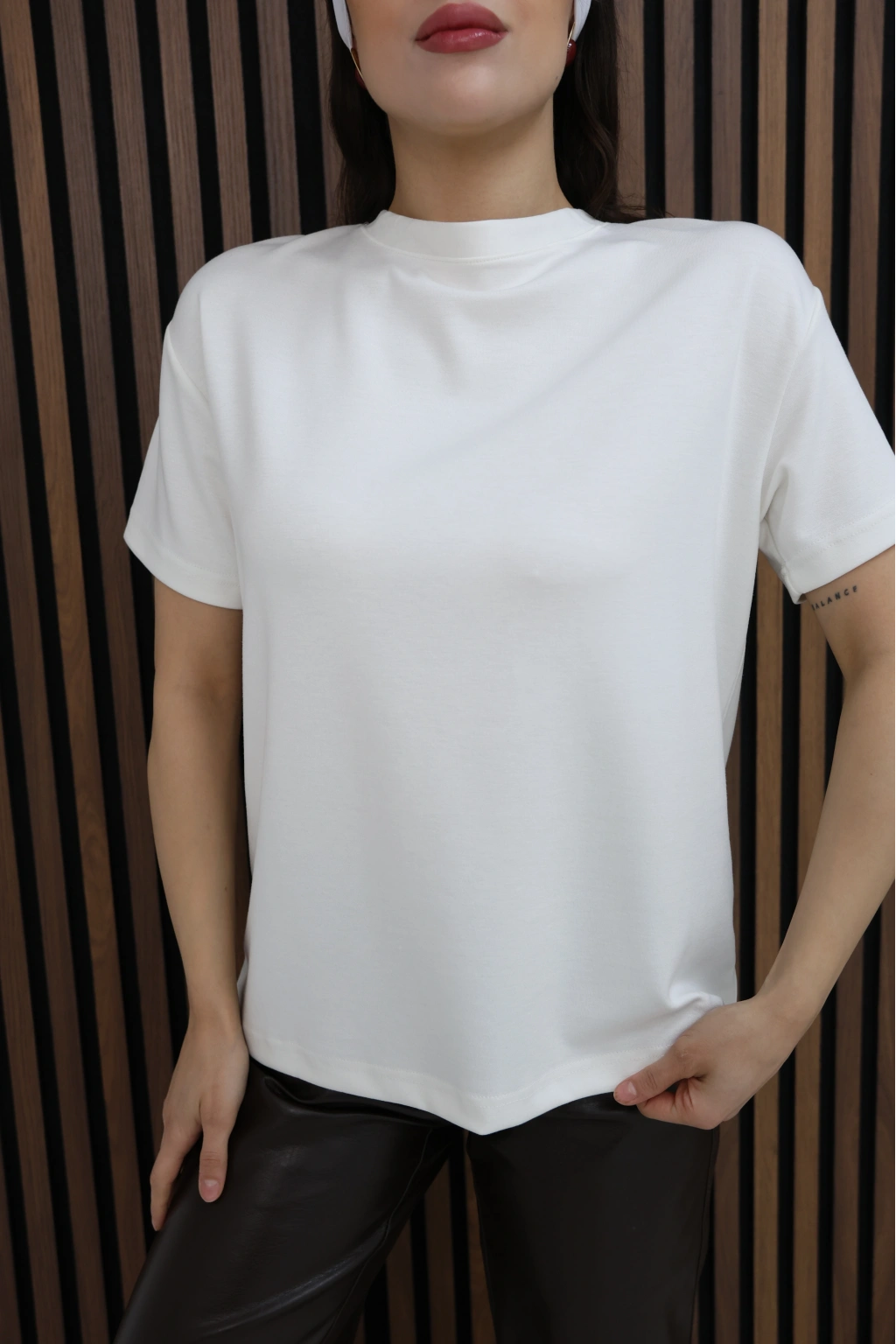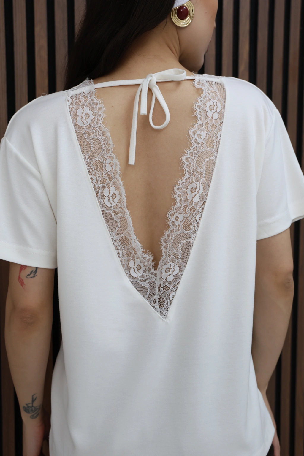 SIRT DANTEL DETAY MODAL BLUZ -BEYAZ
