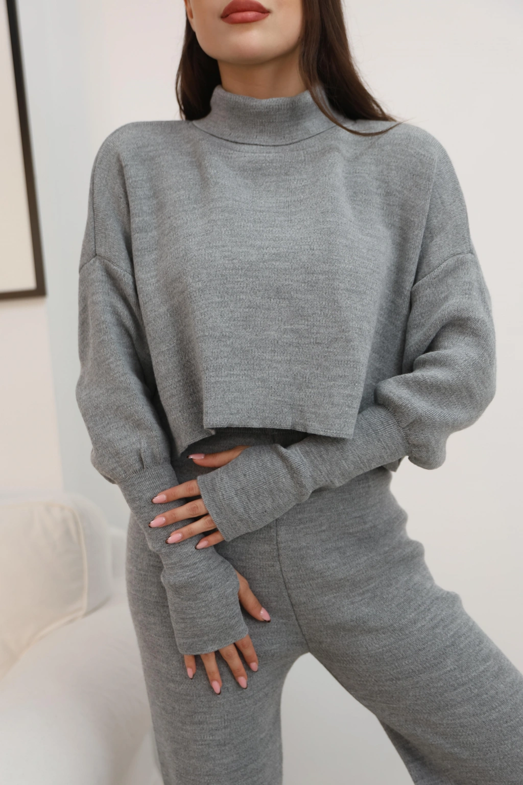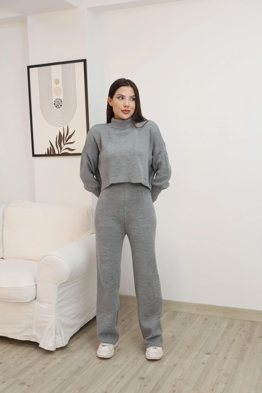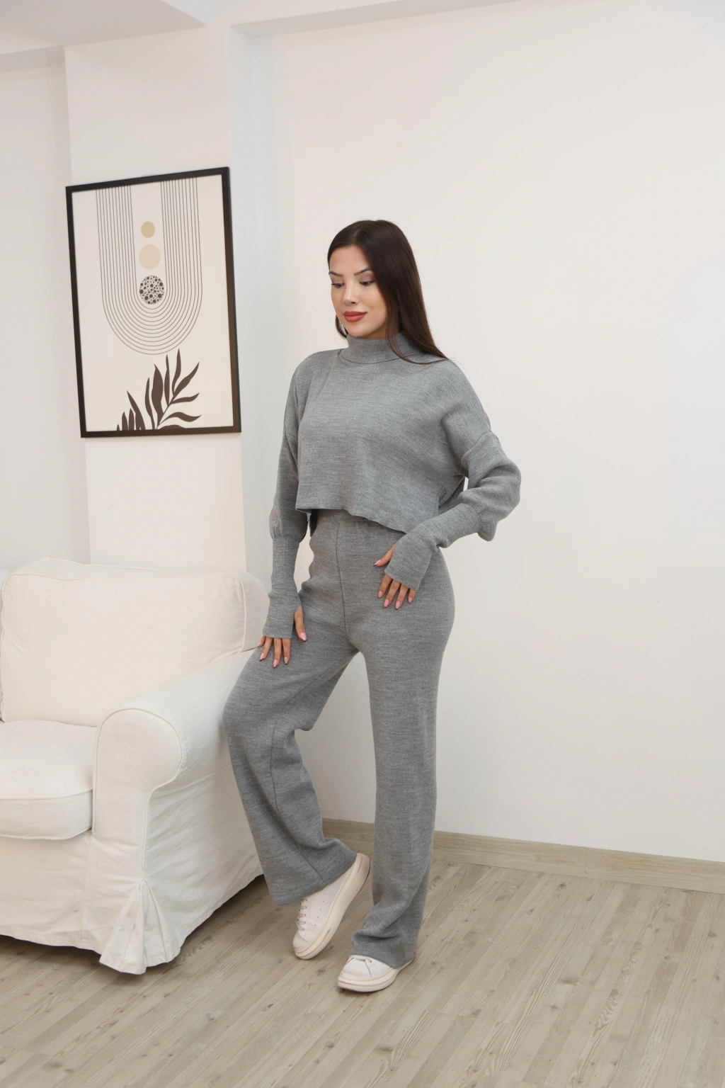 TRİKO ETEK KAZAK TAKIM- KAHVERENGİ