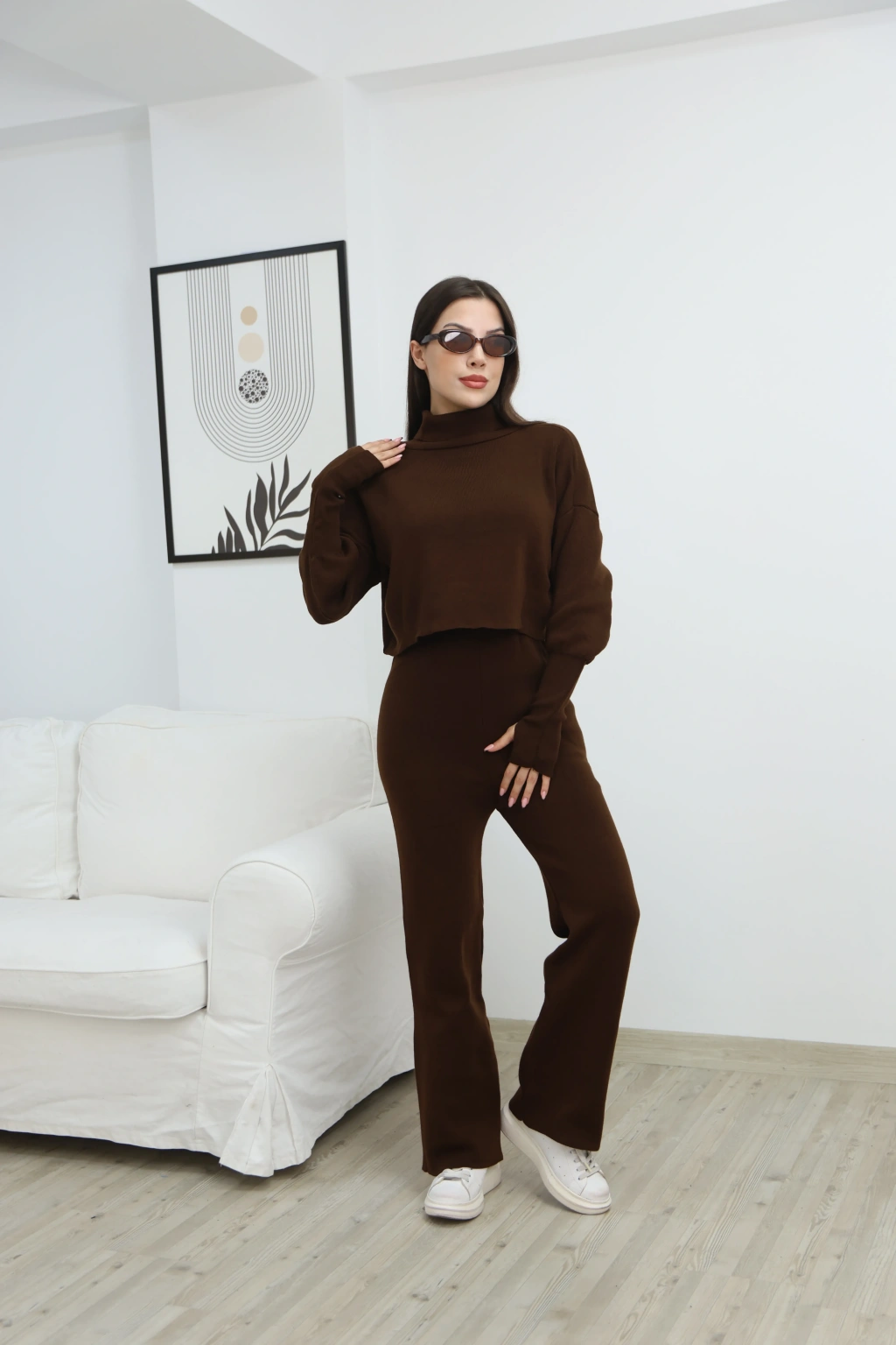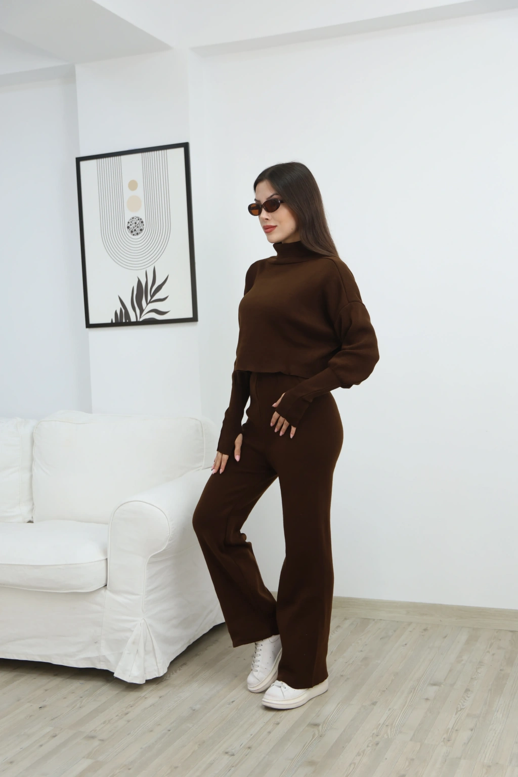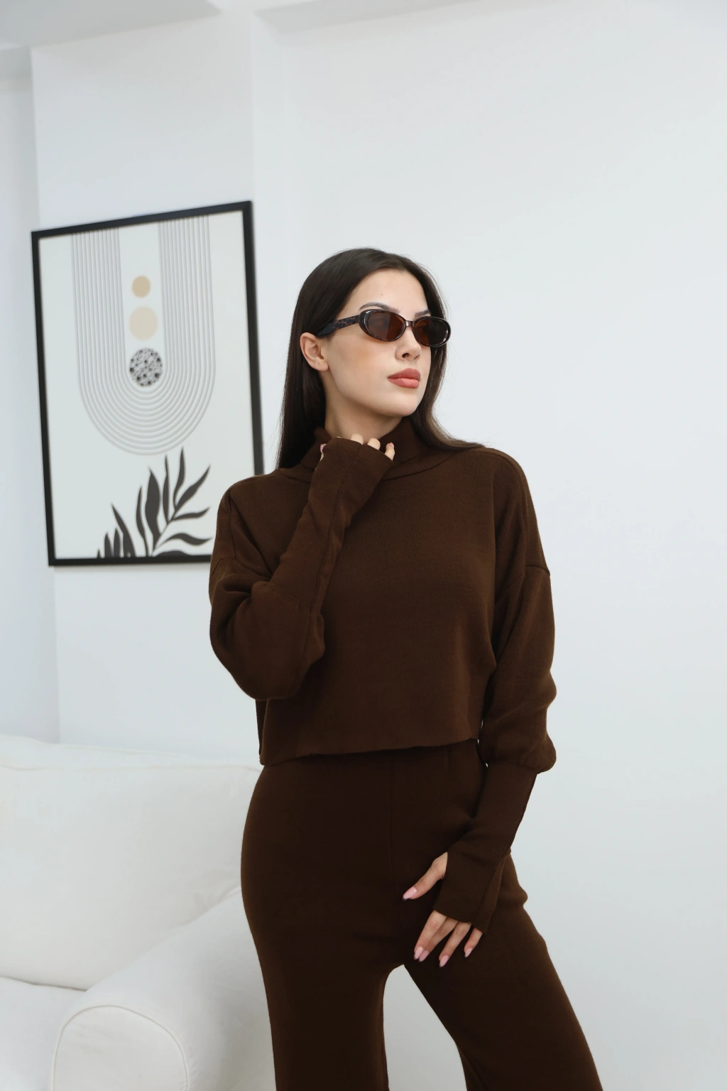 TRİKO ETEK KAZAK TAKIM- KAHVERENGİ