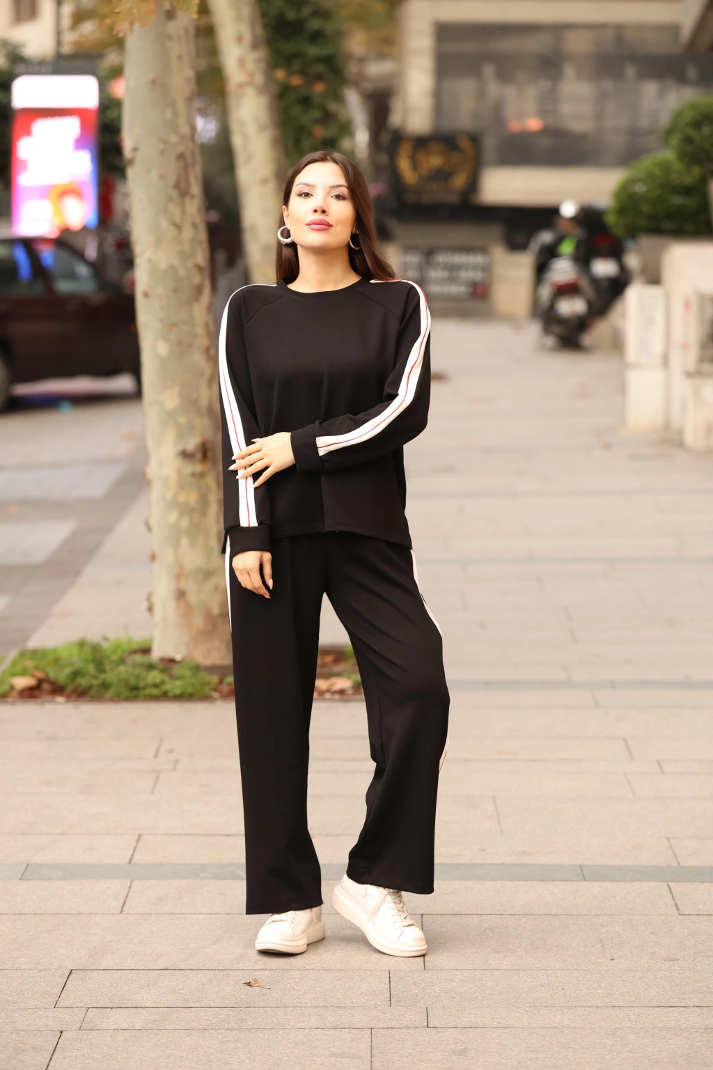 ŞERİT DETAY SALAŞ EŞOFMAN TAKIM- SİYAH